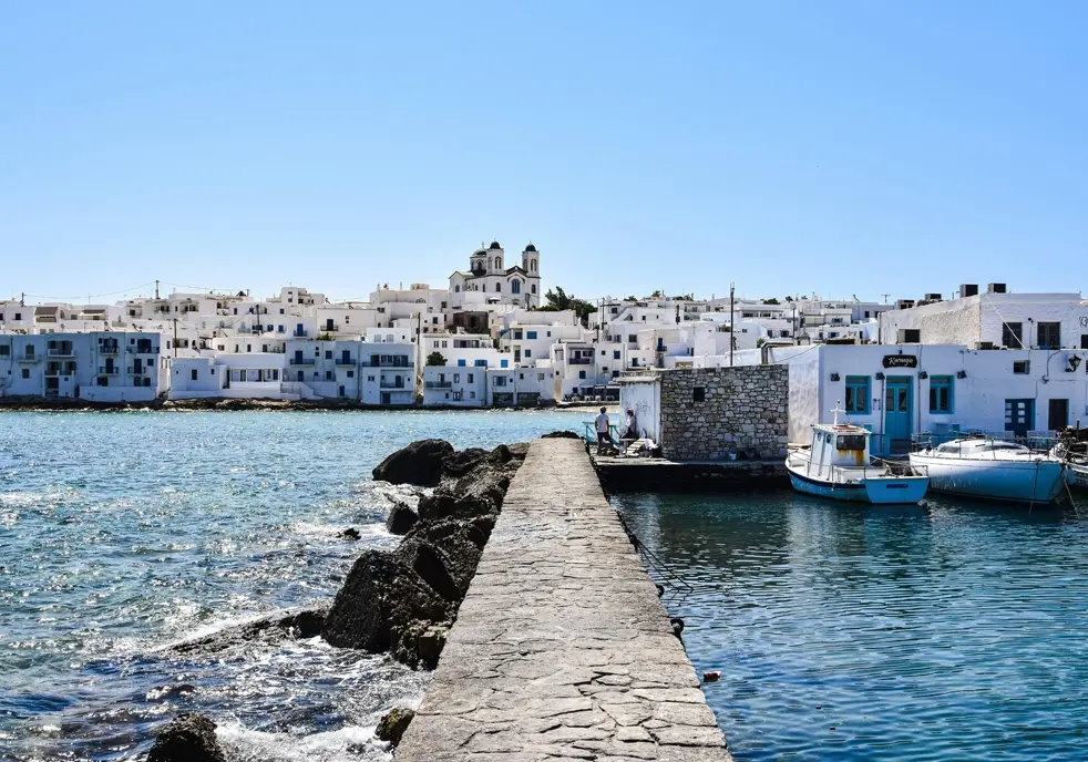 Just a 10-minute ferry from Pounda, Antiparos is Paros’ laid-back sibling. The town is a charming mix of bougainvillea-lined alleys, boutique shops, and mellow beach bars. Visit the Antiparos Cave, one of the deepest in Europe, or laze at Sifneiko Beach for sunset.